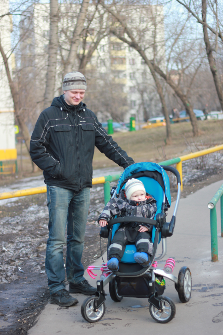 А вот так обычно гуляем. Ребенку год и четыре, почти 12 кг и 84 см.
