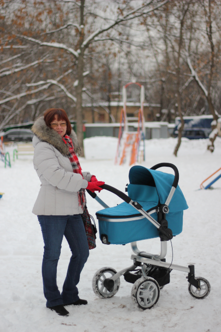 Люлька. В целом люлька неплохая, она теплая, хороший капюшон, накидка удобная на замке, с пологом который можно поднять, есть ручка для переноски которую можно ставить в нескольких положениях, спинка поднимается до 45 градусов, причем ручка поднятия находится снаружи люльки. Но! одно главное и большое но! у нее маленькие размеры. хватило нам ее ненадолго. Правда нам повезло, ребенок зимний и чем старше он становился, тем теплее становилось на улице и тем меньше одежды на него надо было одевать и на балконе мы в ней проспали до полугода. (если что, на фото свекровь)))