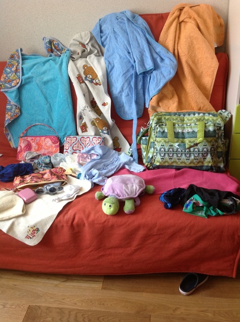 Ну и в самой сумке халат старшему, ему же и мужу полотенца,плакви, шапочки..