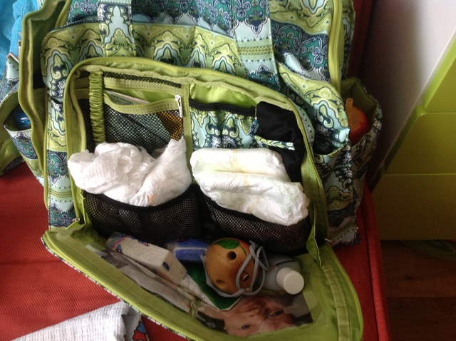 Ну и погремушки, поильник с соком, набор контейнеров со вкусняшками, салфетки и дизенфицирующая жилкость, подгузы прозапас младенцу и старшему.