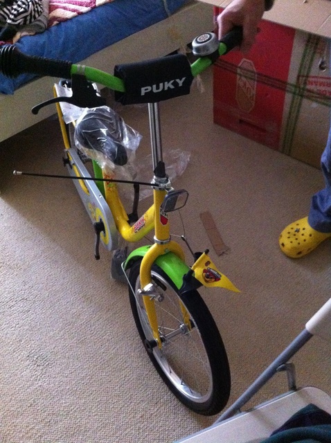 А колеса у вас 16 или 12?? Я тоже такой хотела, но он тяжеловатый, заказала облегчнный алюминий, они у них зеленые! Вот тоже жду с нетерпением, юоюсь, что сыну (3,5) года окажется большим по росту или тяжелым по весу.....