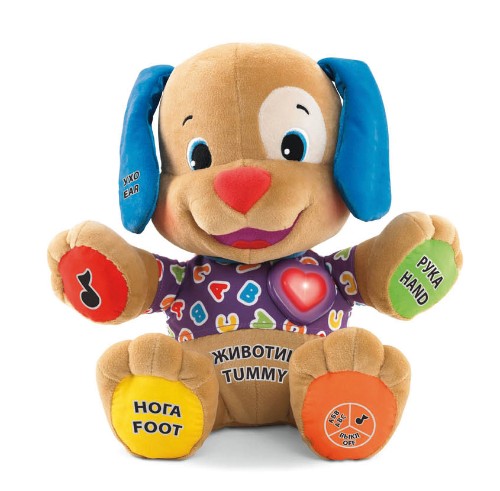 Тупость второго в том, что он фразу сначалала на одном языке говорит, а потом продолжение фразы сразу на другом, а не перевод, у нас первый. Игрушкой очень довольна. Песенки веселые и их много, сейчас сын может рассмеяться, играя с собачкой.