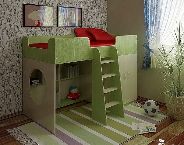 Хотела еще двухъярусную, чтобы на первом этаже рабочий стол, а на втором кровать, но дочка часто слезает по ночам то в туалет, то к нам)) Как-то не по себе,если она будет это делать это со второго яруса)))