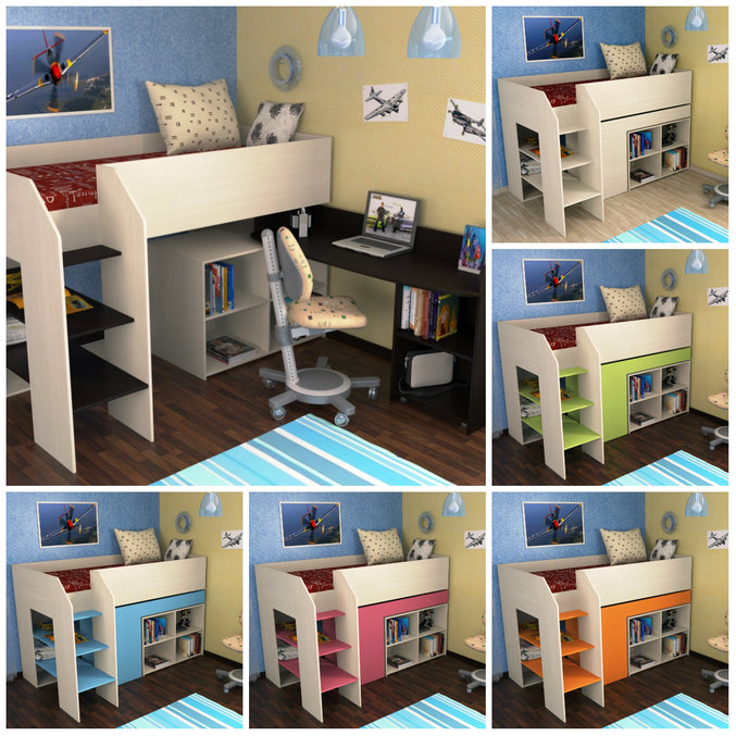Мил, приветик. Вот смотри у меня вот такая кроватка у сынули, Морячок, я довольна как слон. В начале пути я ее боком приставляла прям к нашей вщрослой и сынок мог спутситься либо через нашу кровать взрослую, либо по лесенке. От пола до дна весго 60 см. очень комфортная и безопасная высота. В ящичках у нас нижнее белье, колготки и т.п. Можно вот с такими ступенями сделать сбоку, в них тоже хранить многов сего можно. спальное место 160*80 см. Я очень довольна. Сыночку тоже понравилось и со временем совсем перестал с нами спать. Можно разный цвет выбрать. Можно в добавление для вещей взять узкий шкаф-пенал с полками или штангой. Под цвет сделать один. Приходи ко мне в личку, я тебе по закпуке расскажу, если нравится.