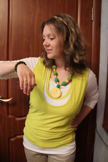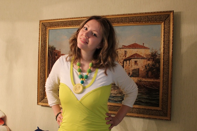 Нам для теста досталась бело-салатовая блуза, хотя на фото с сайта мне по цветовому сочетанию очень понравилась только серо-розовая. Но как только я вытащила кофточку из упаковки, я была приятно удивлена. Салатовый цвет очень приятный, яркий, по-настоящему летний, даже ближе к ярко-жёлтому)) И вживую он смотрится гораздо лучше и интереснее, чем на сайте.