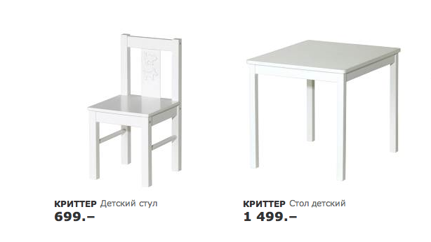 У нас икея, притом самый дешевый. Стол и стул. Еще и самый удобный.