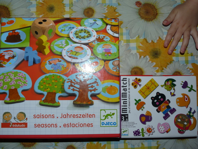 Выбор подарка ребенку1. Настольные игры Djeco Времена года и Миниматч. Игры очень понравились, пользуются у всей семьи популярностью. В лото Времена года несколько степеней сложности, пока мы с Сашей играем в самую простую игру.