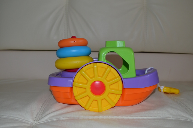 Любит кораблик, а точнее разбирать пирамидку и играть колечками (с обычной пирамидкой играем по этому же принципу)