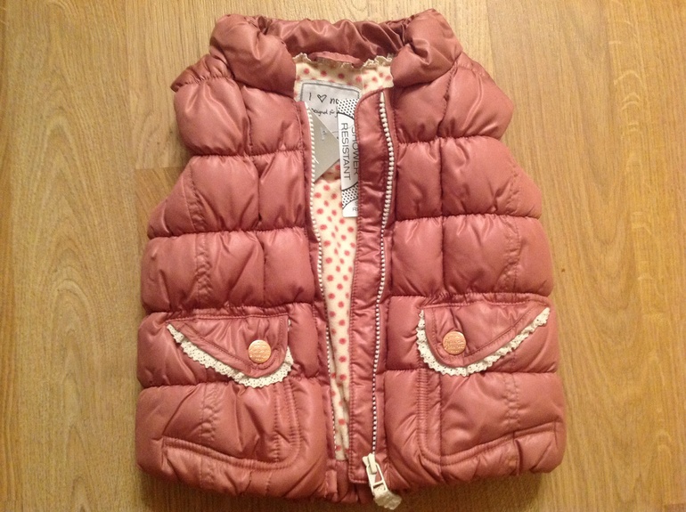 Роозовая очень красивая! Мы этой осенью не успели поносить, так как не ходили еще и как то получилось что когда можно было ее одевать она была большая) вообщем подожду весны, если мала будет то продам) я скажу что нам щас 9 месяцев и жилетка хорошо сидит. Мы худенькие) посмотрим какие весной будем.