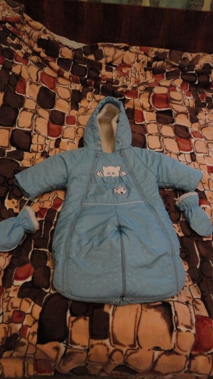 У меня сын июльский, мы брали комбез-трансформер р74. Ребенок просто спал в коляске. В этом комбезе ему и мне одевать было удобно.