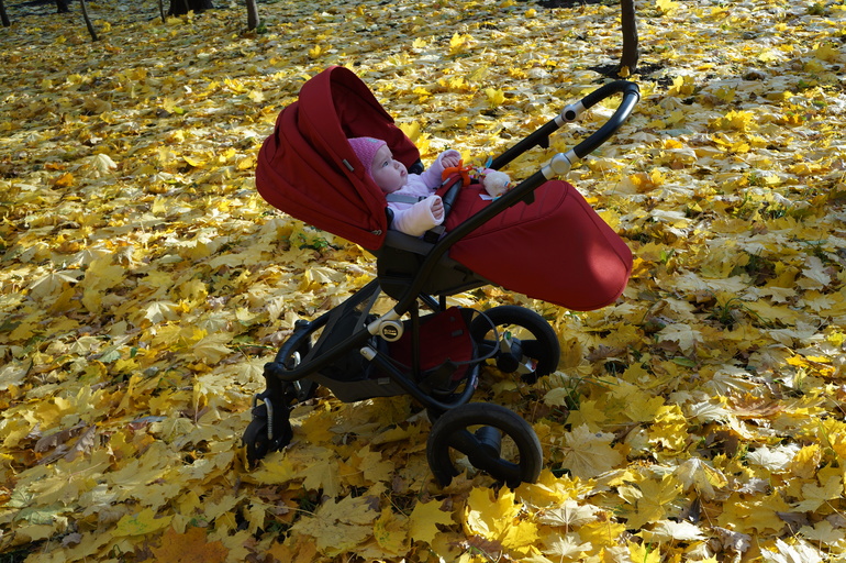 Это потрясающая коляска, но действительно, где-то до полутора-двух лет. У нас как раз в красном цвете. 1. Шасси. Отличная амортизация, задние колеса надувные, передние - резина. Подкачивали только после покупки, до сих пор идеальны. Ручка легко регулируется по высоте. Колеса ни разу не блокировали, нигде не застревали, даже в снежной каше.2. Прогулочный блок. Действительно, легко переставляется к маме-от мамы, я даже на улице с ребенком могу это сделать. Но! Далеко не все мамы любят гамачок (т.е. не спинка опускается, а блок полностью переводится в горизонтальное). Кап не такой огромный, как у капелл, но в целом ни разу с ним не было проблем. Родная накидка на ножки слабовата, мы гуляем в конверте. Я влюблена в эту коляску, но боюсь, что следующей зимой доча не сможет в ней гулять (коляс до 15 кг рассчитан, дочка уже 12). Затаскиваю по лестнице к лифту на задних колесах, но в целом можно пошагать. Складывается не так чтобы очень компактно (блок не складывается пополам). Шасси занимает мало места, а целиком коляску можно сложить только в положении лицом от мамы.Но, несмотря на все недостатки, я ее обожаю и всем рекомендую! Так что даже и не думайте, берите!