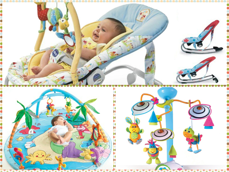 Точно также как и Вы была в раздумьях, что брать, а что нет. В итоге, спустя полгода дизни ребенка могу сказать: мобиль — это вещь! Ребенка (моего по крайней мере) очень заинтересовал: пока был маленький лежал, смотрел на крутящиеся игрушки, слушал музыку. Поэтому советую брать с музыкой, причем не механический, а на батарейках. Его можно взять и б/у. У нас спустя полгода как новый. И, ребенка интересует до сих пор. Развивающий коврик для нас оказался ненужным, поэтому через 2,5 месяца продала. Пока ребенок был маленький-хватало мобиля и дуги, стал чуть постарше — не особо интересно... Сейчас ползает на одеяле с горой игрушек. Лежать и смотреть вверх не заставишь) При трудностях с финансами можно обойтись просто одеялом, купить яркий отрез ткани, как простыню. И купить недорогую дугу и цеплять игрушки, или сделать дуги самим. Где-то видела дуги,как на коврике с вашей картинки, сделали из подручных материалов....Шезлонг: у меня ребенок спокойный, поэтому пока был маленький и в кроватке неплохо спал) если была необходимость взять с собой, например, на кухню — брала либо в люльке от коляски, либо в автокресле (естественно ненадолго и оно у нас с 0). Сейчас понимаю, что если бы был шезлонг, то ровно до 3,5 месяцев: сынок научился переворачиваться, вариант с автокреслом отпал, выручала люлька) Поэтому, для второго ребенка поняла, что ни стул с 0 месяцев, ни шезлонг, качели не нужны... Только если будет очень неспокойный))) А так даже маятником на кроватке не пользуемся — ребенок засыпает сам)Уфф...