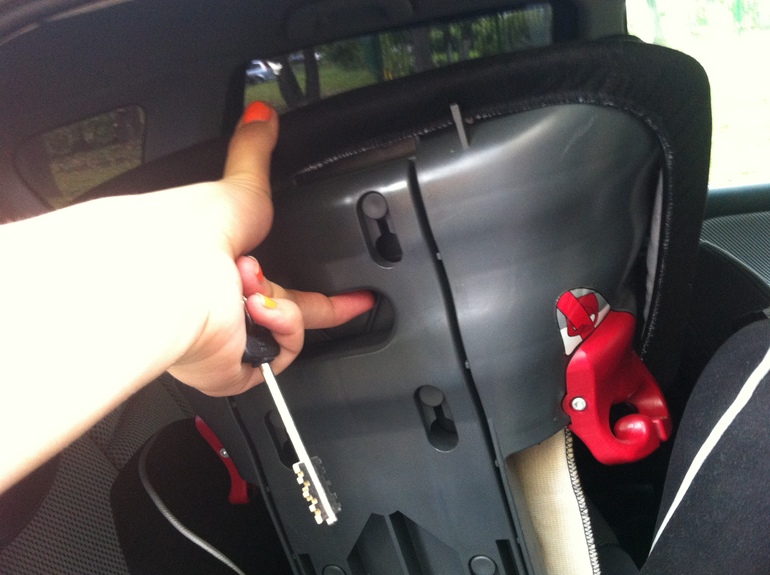 И вот эти места меня смущают, почему-то написано, что туда,в эти красные штучки, ремень надо засовывать... как..(она сбоку от подголовника, с обеих сторон)