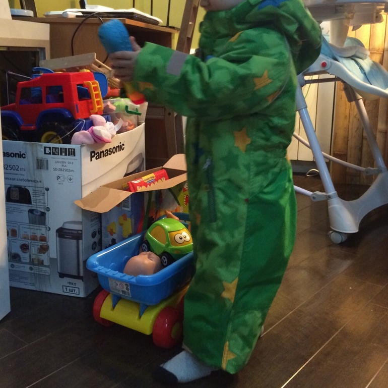 Сын сейчас 90. Штанины подвернуты сантиметров на 10-15. По ширине нормальный, рукава тоже не особо длинные. Меня смущает такой запас в штанах и вот как горловина смотрится. За 2 месяца вряд ли ребенок сильно подрастет.