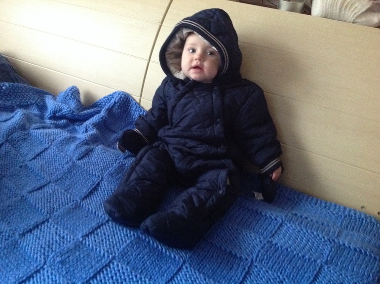 Детская одеждаПришел наш осенний комбез!!!! Он действительно темно синий. Заказала размер 9-12 месяцев на 74-80 см, но Федюша на радость бабушке в нем утонул!!!! Ну думаю к моменту носки мы подростем и поправимся!!!! Из за зубов опять всхуднули (((