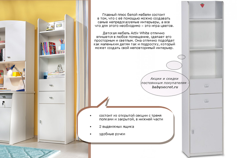 Присмотрела ещё мебель, тоже нравится, но она чисто белая, можно конечно красок добавить обоями, текстилем и так далее