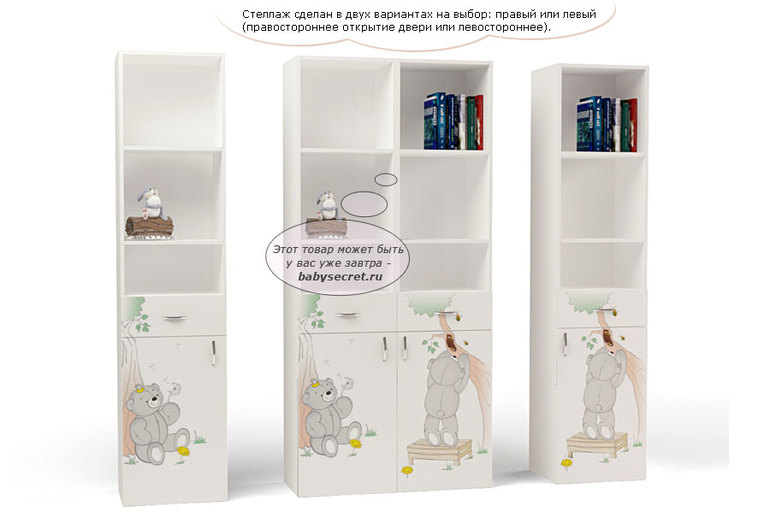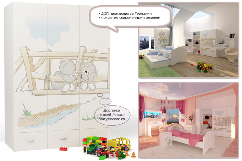 берите белую — мишки могут вам быстро надоесть, потом на фото пустые почти шкафы, а в реальности все будет в игрушках и будет зрительный перегруз