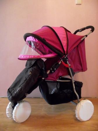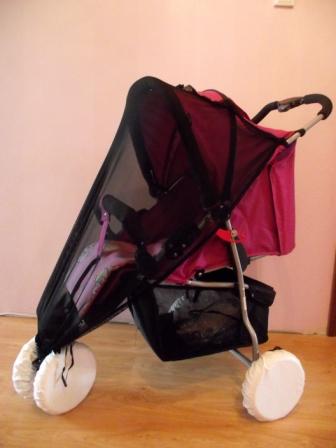 Чехлы на колеса я тоже шила сама из остатков какого-то полиэтилена...