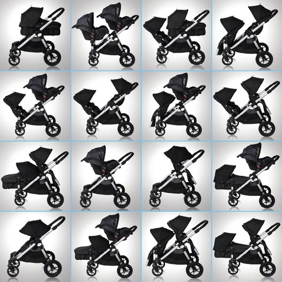 2) Baby Jogger City Select в полной комплектации: два прог. блока и люлька. Минусы: самый дорогой вариант; при полном "параде" в наш лифт не зайдет по длине: придется снимать второй прогулочный блок и тащить в руках. Плюсы: разные варианты установки блоков все случаи жизни.