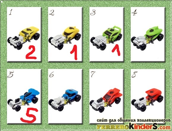у нас есть 1 зеленая, 3 желтых и целых 5!!! одинаковых синих. У меня ребенок уже скоро плакать начнет видя эти синие машины. Мечтаем о красной))) Может кто знает секрет, как их выбирать))