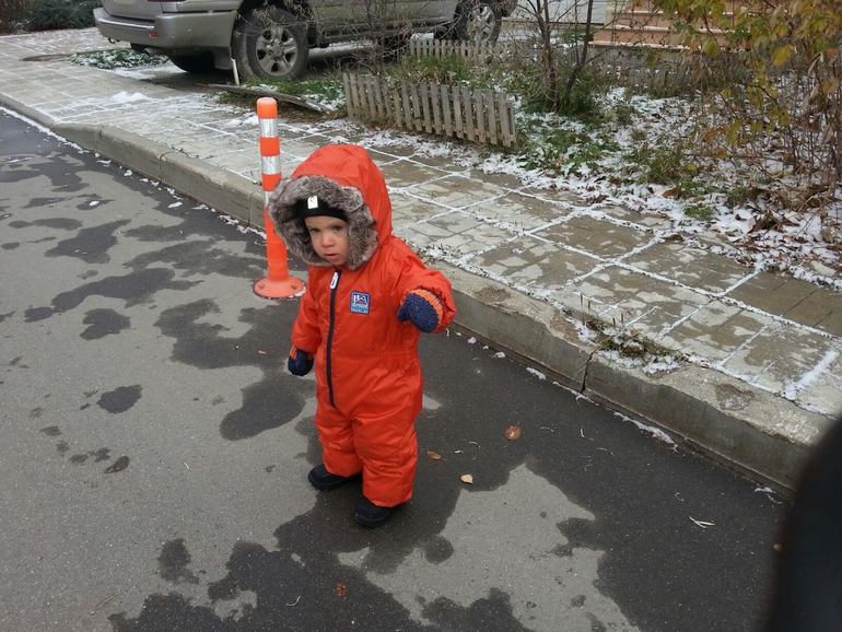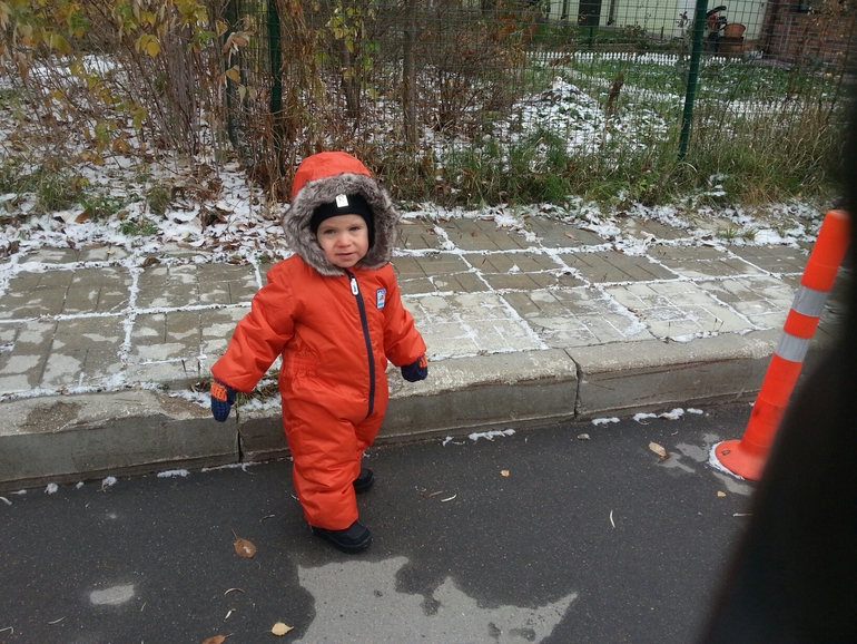Переживала за обе вещи.. Ну, точнее, конечно, переживала за ребенка - как оно все по удобству и теплу ему будет. Вещички справились на отлично!:). Наступила как раз, видимо, та самая "еврозима" по температуре - у нас -6, бодрящий ветерок (фуфуфу) - для меня все -15, терпеть не могу ветер :(.