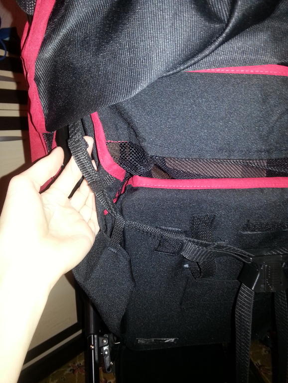 . Распороли сзади на спинке где пришиты ремни и зашили ближе к краям коляски или как???