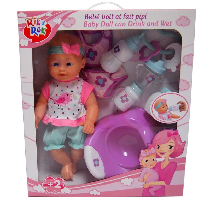 4. Самый бюджетный вариант - 36 см, пьет и писает. Тоже продается в Ашане. Но наверное у него тельце совсем из твердой резины (