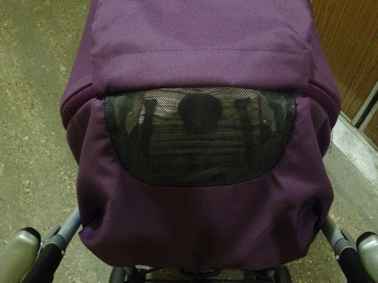 Капор: это просто песня. Выглядит он прекрасно, в сидячем положении можно закрыть его до бампера, если расстегнуть дополнительную секцию, то до бампера можно закрыть и в лежачем положении. А так же бонус: если открыть доп. секцию при сидячем положении - то капюшон закрывает ребенка с ножками! Если еще поднять подножку на самый верх - то выглядит футуристично :) Я так пробовала делать, когда поднялся ветер с песком, до ребёночка вся эта бяка не долетала. Сзади на капюшоне есть смотровое окошко, оно достаточно продумано: оно затянуто и темной сеткой, и силиконом. Ни дождь, ни яркий свет не мешают следить за спящим малышом. На части ткани, которая откидывается на смотровом окошке есть карман для мелочей, он достаточно большой, жаль не закрывается на молнию. Сзади капюшон крепится к спинке кнопками, поэтому не висит мешком, выглядит эстетично. Кнопки можно отстегнуть и завернуть капюшон наверх, тогда получится тент от солнца с проветриваемой частью в изголовье. На козырьке есть светоотражающая полоса.
