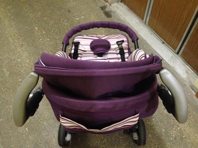 Подножка: регулируется в трех положениях: от полностью вертикального для подросших деток, до немного приподнятого для образования еле заметной люлечки. Мы пользуемся средним горизонтальным положением.