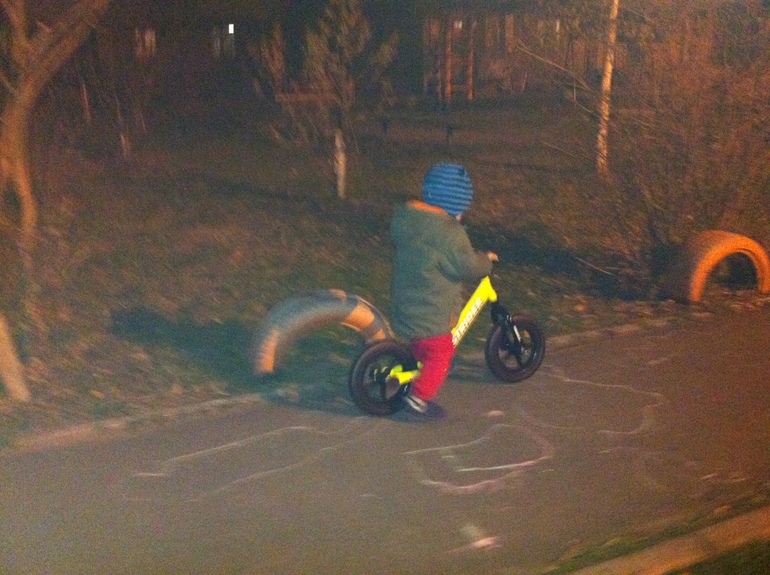 Только попробовали кататься, и Мирос подхватил ОРВИ, пришлось 3 дня дома сидеть. К счастью, с вирусом справились быстро и уже 3 дня Мирка колесит. Первые дни был кайф - едет медленно, мы гуляли вразвалочку)) А вчера уже понеслось) Резво и шустро. Пора шлем надевать. Гуляем вечером, фотки не сделать. Жалею, что не купили в начале лета вместо 3х-колесного велика, который Мира так и не полюбил, хоть кататься и научился. Не сравнить, конечно, тут кураж, скорость, а там скукотища) Прикольно и то, что зимой к этому беговелу можно лыжи нацепить :)