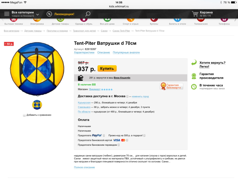 Я не доверяю ватрушкам, ребенок маленький, не может остановить ватрушку, а едет она хорошо и далеко, мало ли что)