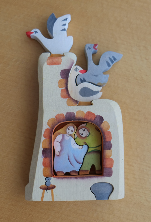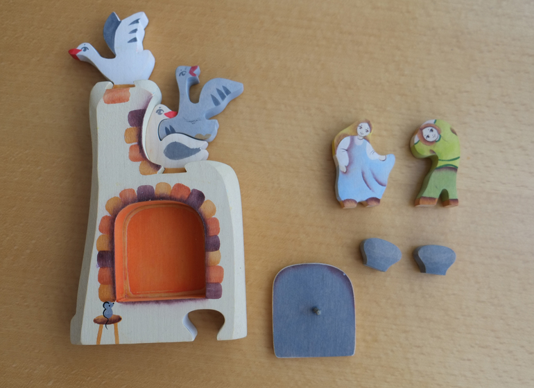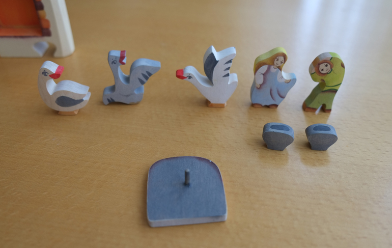 Вот все съемные детали. Гуси и дети отлично стоят. И являются двусторонними. На некоторых фигурках (и в дальнейшем) есть следы от дочкиных творческих порывов. Их можно аккуратно смыть, но руки не всегда доходят отслеживать.