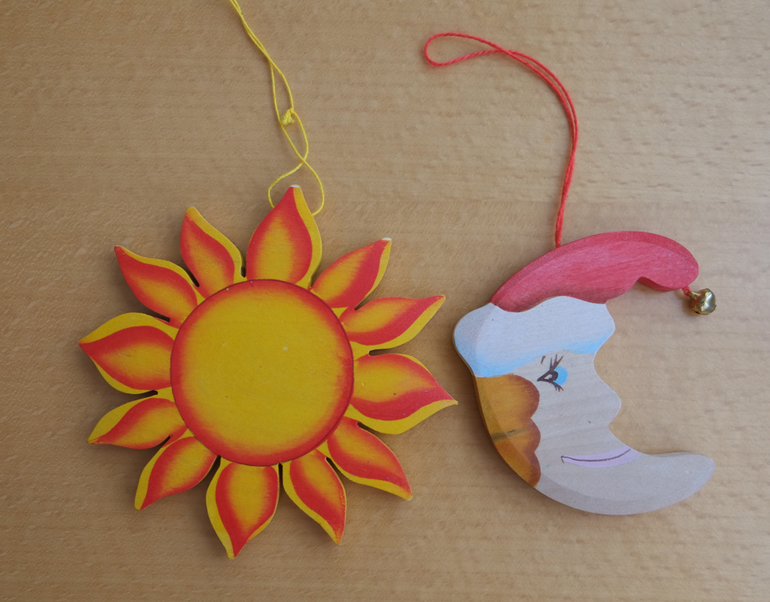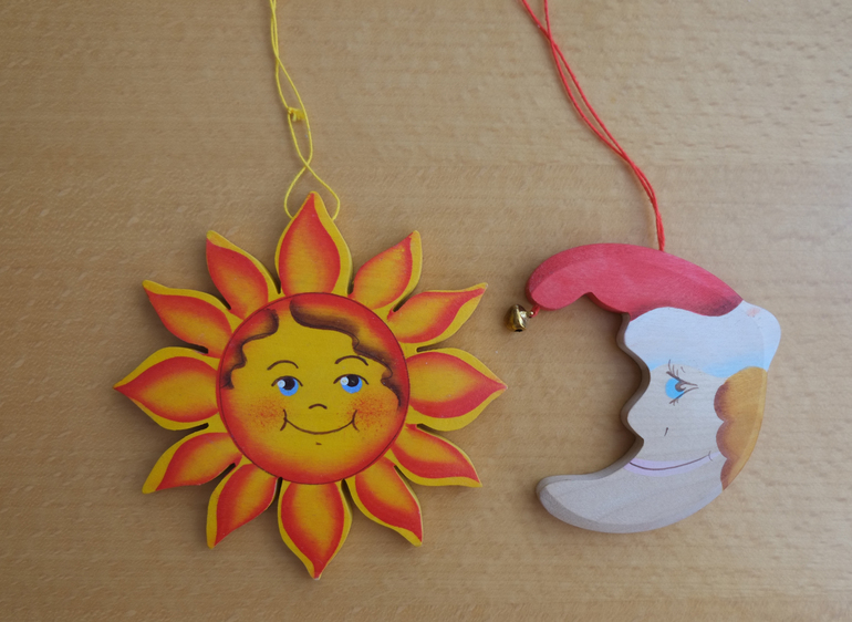 Еще есть солнце и месяц. Вообще планировались как новогодние игрушки (впрочем наверное и повешу на елку) - но пока дочка развешивает их на ручку плиты. Развивает так сказать мелкую моторику))