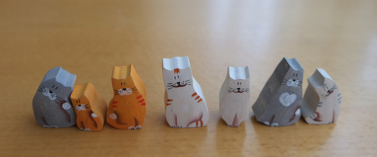 Кошки могут лежать/стоять и на печке. То есть разные "наборы" примерно одинаковых пропорций и ими можно играть вместе.