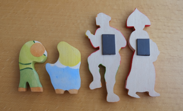 Также купила 2 магнита на холодильник, но дочка сразу их затребовала себе и они теперь не магниты, а папа и мама этих детей))) К сожалению, не стоят, но и лежа очень и очень востребованы.