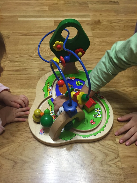 Как лабиринт мало привлекает младшую пока, но зато очень нравится по полозьям уточек и лягушку перемещать))) иногда и старшая сестренке рассказывает какую-нибудь историю как пошли зверята гулять...