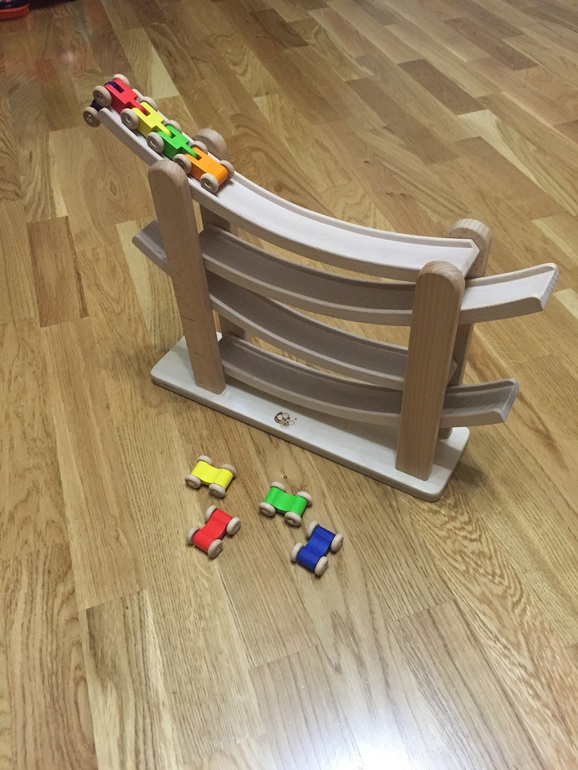 Роллер с машинками, больше востребован младшей. Нравится запускать паровозик из машинок и следит за ним))) по несколько раз на день около него сидит, правда пока ее хватает на небольшой временной период, но в этом возрасте они быстро переключаются...