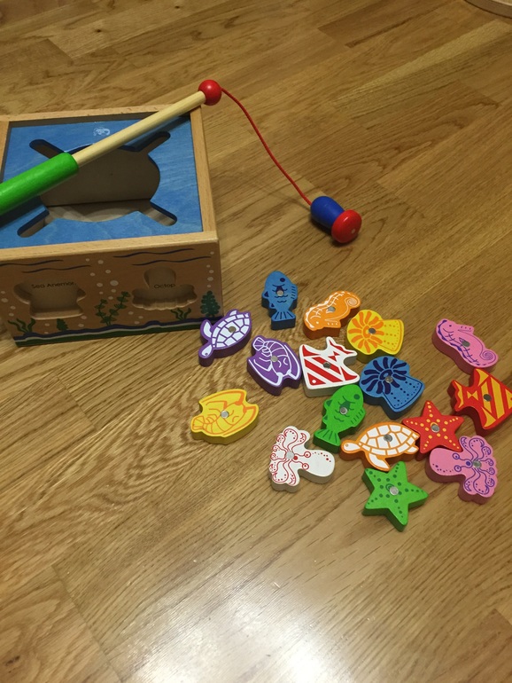 Недавно у нас появилась игра "рыбалка". И могу сказать берет вверх по популярности игрушек у маленькой, везде ходит с этой коробочкой и все туда складывает))))