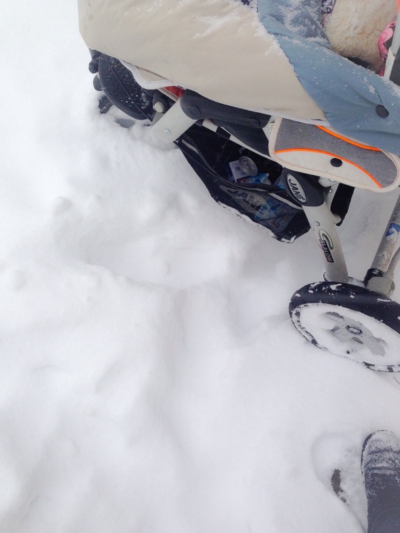 Ух.... Пришлось маме попотеть, но не от того, что коляску сложно было везти, а потому что мама больше напоминала корову на льду))))) почему-то во многих местах под снегом оказывался лед((((