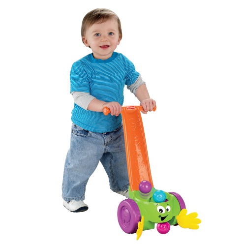 Для меня такая игрушка не интересна. Ходить и так уже они ходят, а толкать что-то-есть дома куча всего интересного потолкать, особенно старшего сына кресло компьютерное )))))) Зато вот за собой на веревочке Алешка любит собачку возить :)
