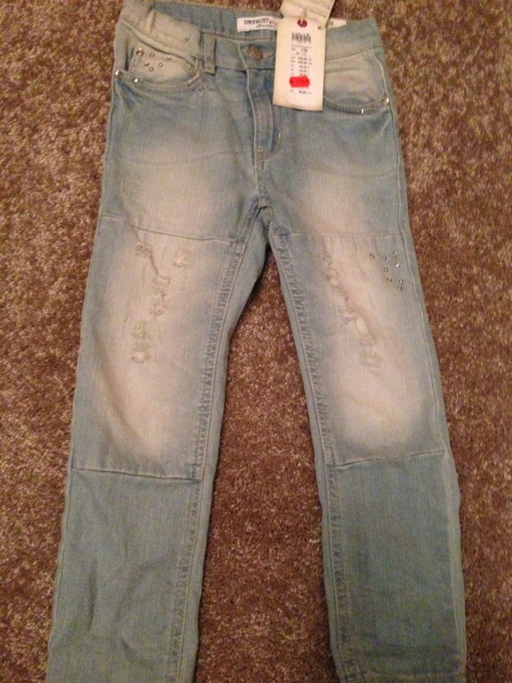 Линдекс — шведская марка. Ниже вот говорят, что у них есть магазин в Мега Химки. Маша сейчас примерно 108 см, джинсы 110, к лету будут нормально. Главное, что они с клепками и дырками, и на поясе утяжка))