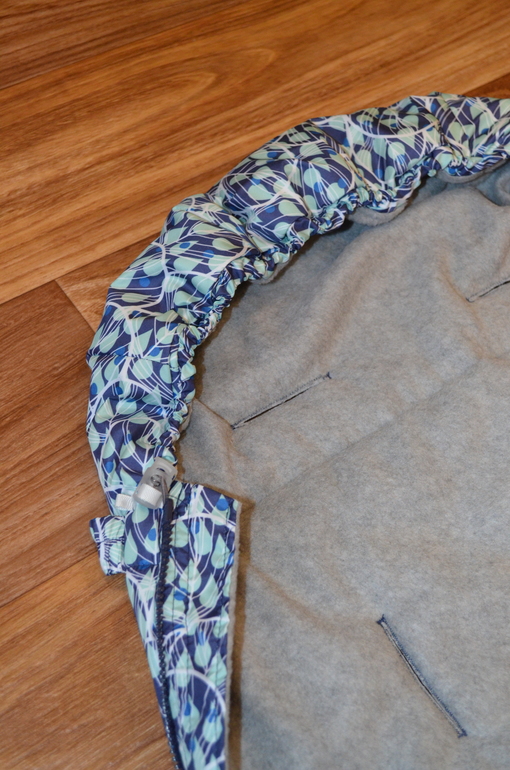Резинка для регулирования капюшона на передней и задней части конверта.