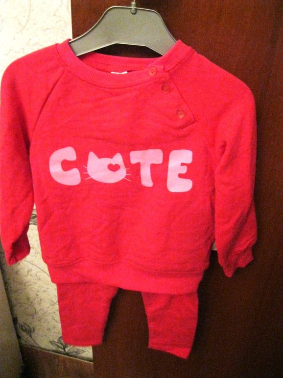 Только хвасты! (одежда и обувь)Сама по распродажам не хожу..почти всю одежду нам покупает моя сестренка на зарубежных сайтах..так что все к нам приезжает с доставкой на дом)))Все куплено по распродаже.Ну,начнем..это то что в нОске было до года и сейчас.Костюмчик..носим его с 9 месяцев.К нему есть футболочка с длинным рукавом белая.