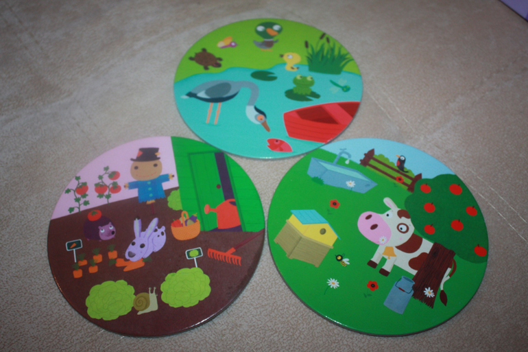 3 игровых поля и 3 живности. Качество супер. Мы достаем карточку и находим её на поле, а еще расставляем живность.