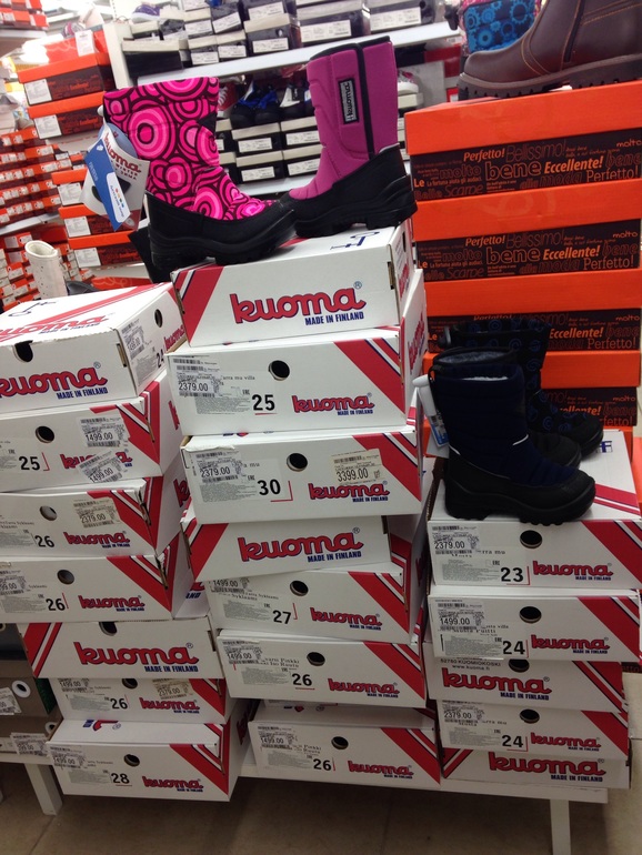 Сегодня в Беляево в ДМ были на девочку розовые размеры 24 и 26 (3-4 пары), 27 размер — одна пара. На мальчика 25 размер черные одни.