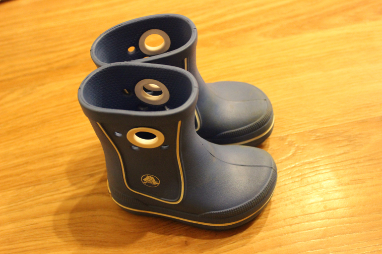 Резиновые сапоги Крокс. Куплены были еще летом, ибо я не знала в чем выгуливать сына после дождя. Учитывая их ценник, покупать их супер-невыгодно, оденутся за все лето и теплую осень все равно всего несколько раз. Поэтому на будущий год однозначно брать их не буду. Лучше взять Лемиго, вытащить флисовый сапожок - и вот это уже летние резиновые сапоги. О Лемиго расскажу как раз дальше.