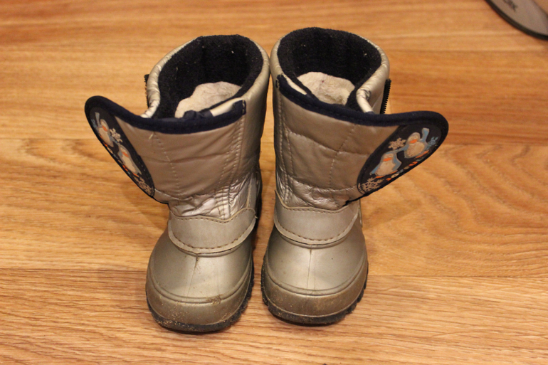 Сноубутсы Капика. Это достаточно бюджетный вариант обуви для слякоти. Внутри войлок, снаружи непромокаемая резина. Но! В месте, где идет шов, могут промокнуть. Мы носили их в холодную осень и зимой, при температуре от 0. Подошва не скользит практически. Один раз промокли в них - не успела догнать сына и он наступил в глубокую лужу. Так что они скорей для снежной каши, чем для луж. Но в целом впечатление хорошее. Наш ортопед рекомендовал нам Капику, да и летом мы носили сандалики этой фирмы. Ничего не развалилось, все цело. Сноубутсы наши только несколько износились внешне, липы уже не держат так хорошо, как раньше, да и выглядят они потрепанными. Ну и еще один не существенный недостаток Капики - это дизайн, лично мне очень мало моделей пришлись по вкусу. Но о них как известно, не спорят)).