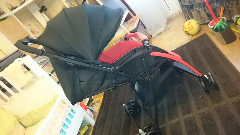 Из минусов ткань, похож на юбку из неопрена :-) на первый взгляд показалось что летом будет жарковато. Нужно х/б матрасик? но посмотрим как летом будет. И сиденье в сидячем положении не по 90гр. Ребенок немного лежит, отдыхает :-)