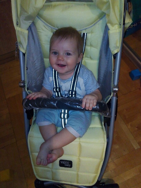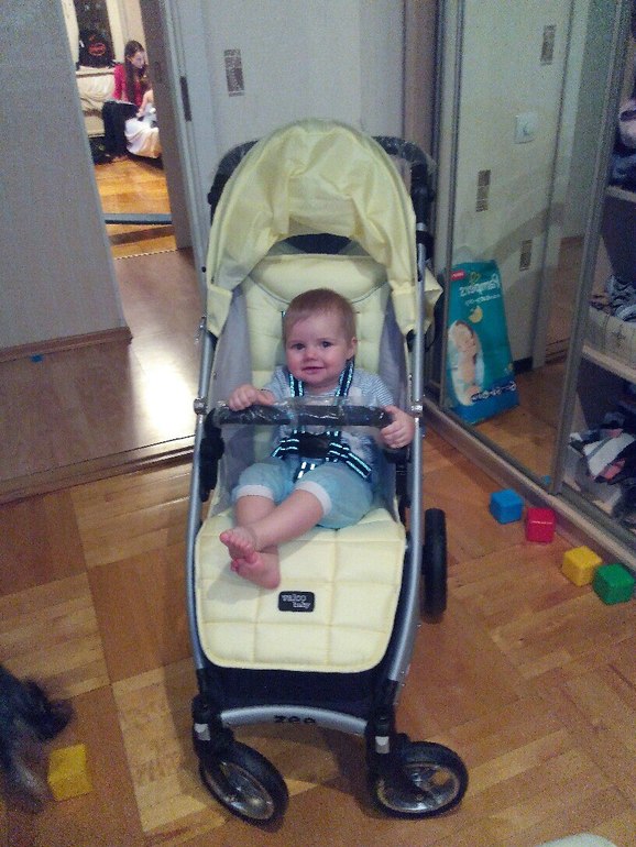 Тестили мы её пока что только дома, но я уже успела отметить её некоторые достоинства: места для детя куча( моя весит 10кг, 76 рост); ремни очень удобные, легко застегиваются-растегиваются; спинка легко опускается-поднимается с помощью спец.ремня; удобный механизм складывания, и колеса не пачкают обивку; колёса легко съёмные; качество материалов суперское; легкая как пушиночка.