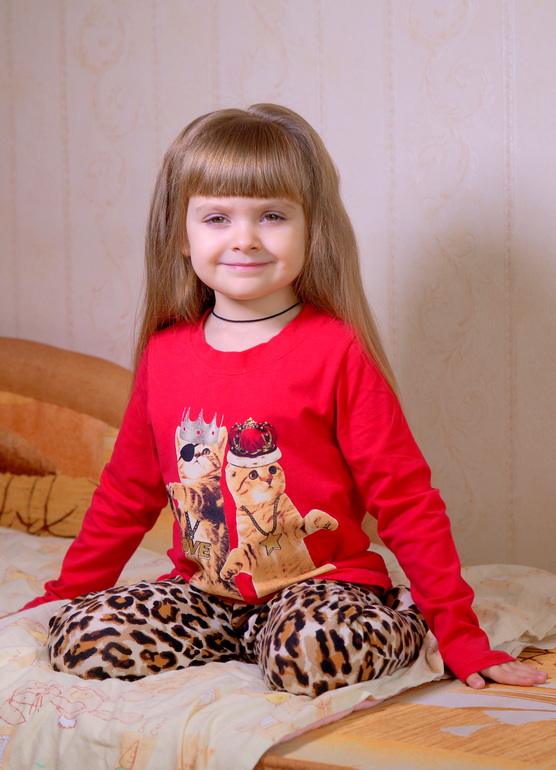 А этот леопардовый топик я купила дочке в дополнение к пижамке. Тогда данный комплект вполне можно использовать в качестве домашнего костюмчика.